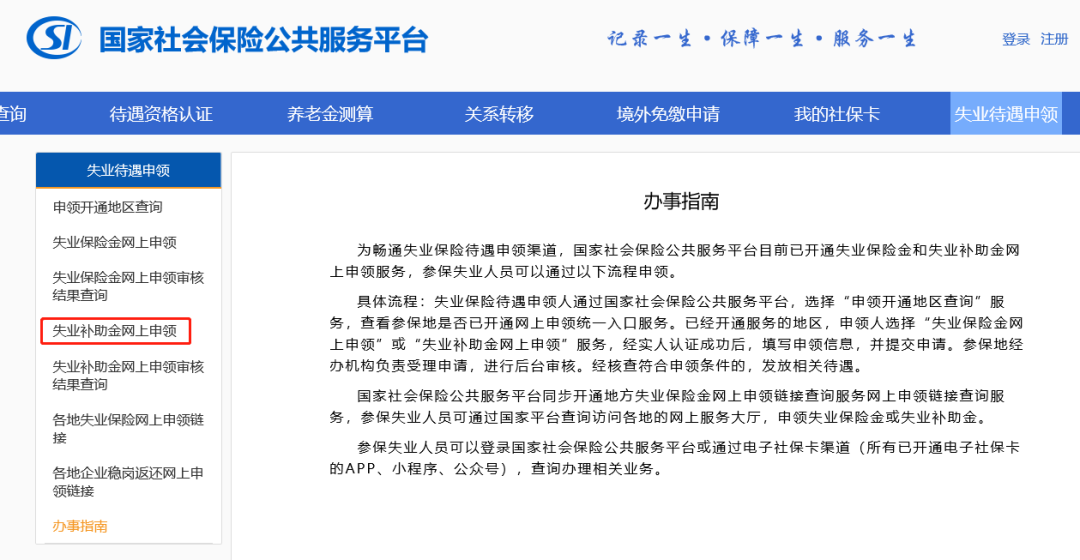 登錄網(wǎng)站(可百度搜索“國(guó)家社會(huì)保險(xiǎn)公共服務(wù)平臺(tái)”或輸入網(wǎng)址:http://si.12333.gov.cn 登錄)——點(diǎn)擊“失業(yè)待遇申領(lǐng)”;