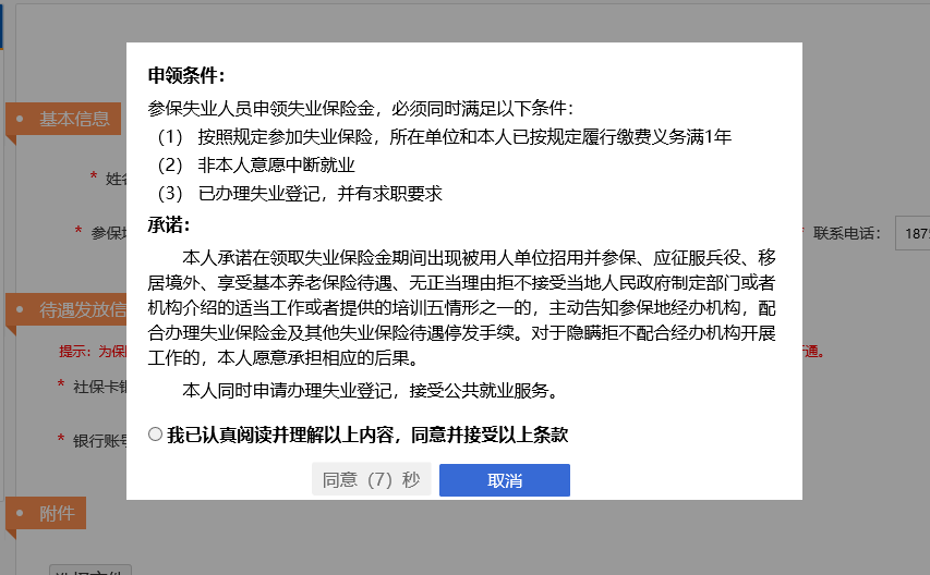 5.仔細(xì)閱讀此頁(yè)面提示內(nèi)容(“申領(lǐng)條件”、“承諾”),符合申領(lǐng)條件點(diǎn)擊“我已認(rèn)真閱讀……”前的○——點(diǎn)擊“同意”;